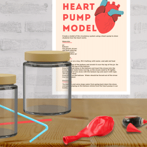 The balloon end valve stops water from going back down the straw, and your pumping on the balloon mimics how the heart pumps in our bodies.
